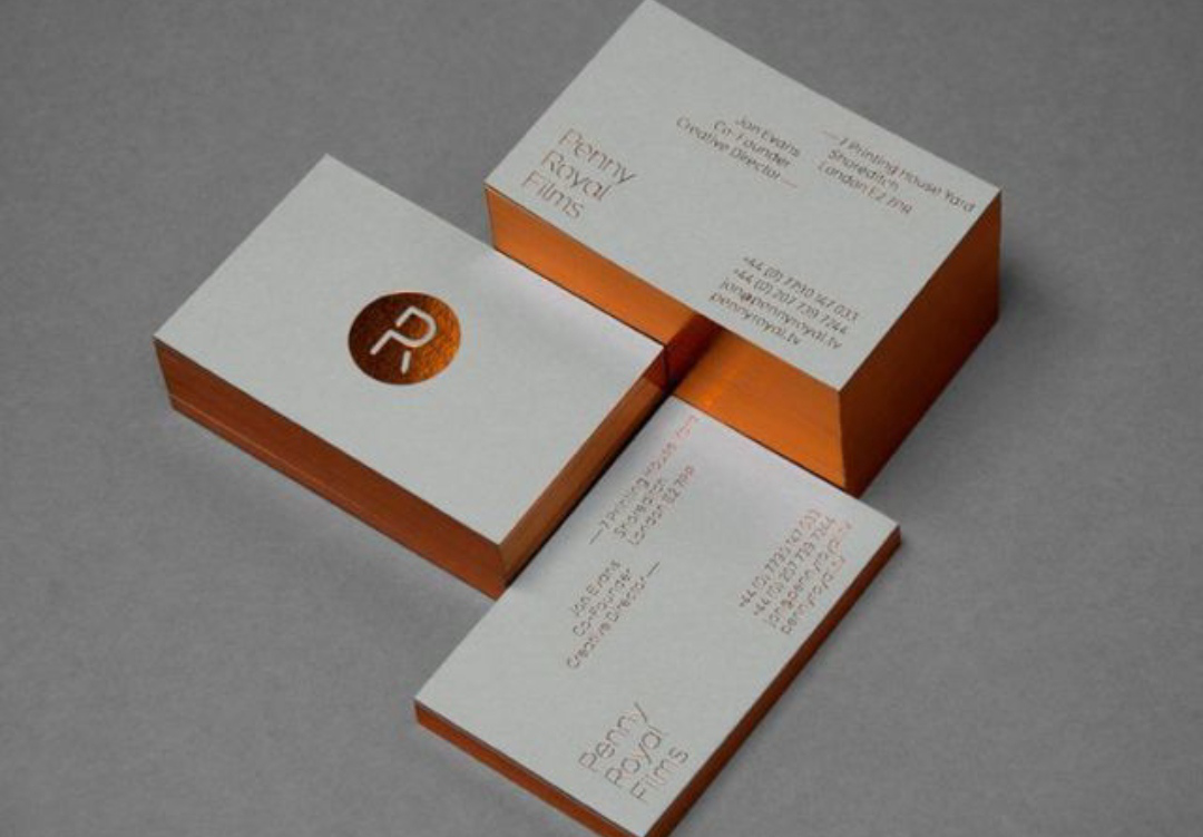 1.大面積色塊選擇銅版紙印刷名片。